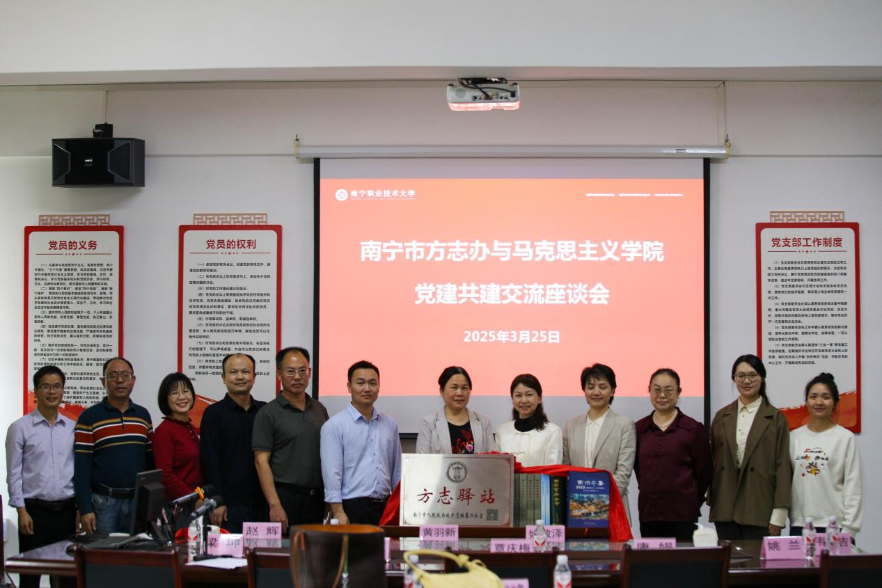 3月25日下午,南宁市人民政府地方志编纂办公室副主任、党组成员覃庆梅一行5人到访williamhill,开展党建共建活动。公司党总支书记黄羽新、两个党支部书记及部分思政课教师动员参加此次活动。