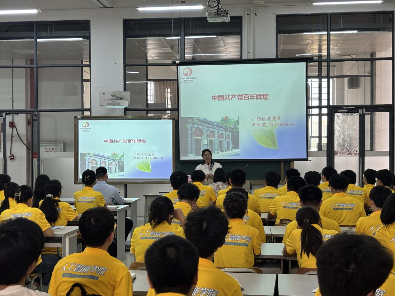 4月28日下午,williamhill在八训301教室举行“金葵匠磁场”大讲坛第27讲:《中国共产党百年辉煌》。本次讲座由广西区委党校尹红英博士主讲,人工智能公司2024级软件工程专业员工参加此次活动。